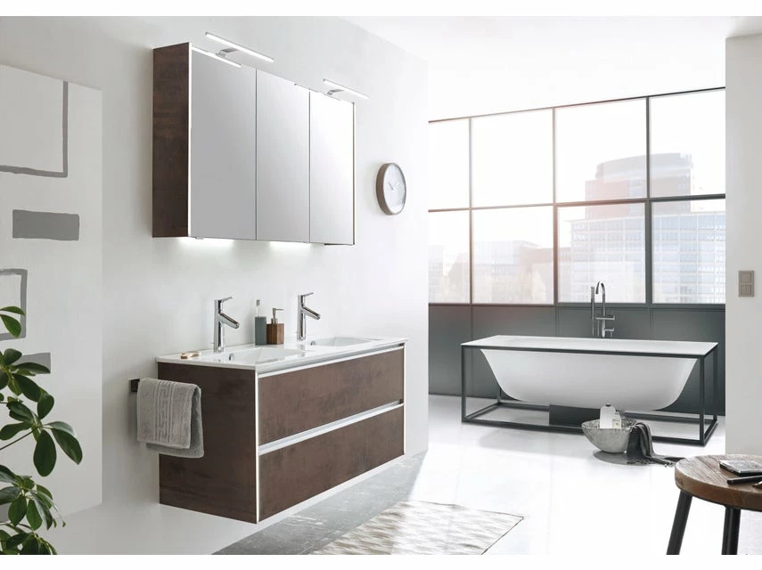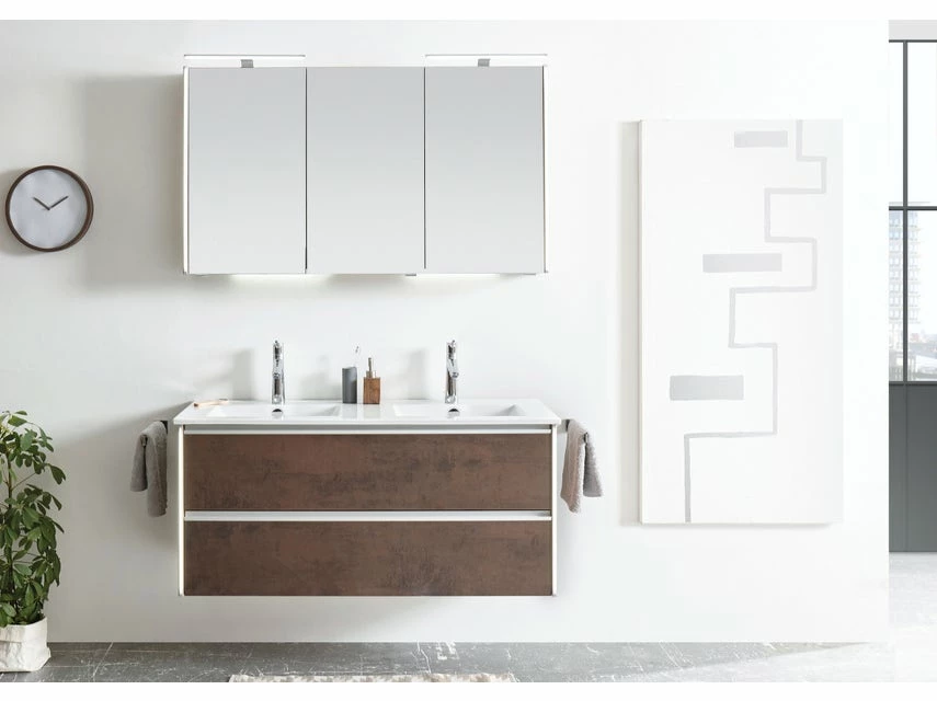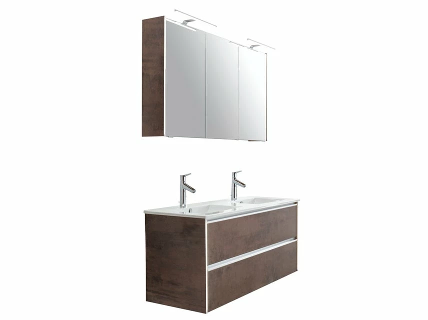 Mit dem 3-teiligen Badezimmer-Set Bordeaux zieht moderne Eleganz in Ihr Badezimmer ein und Sie sind komplett ausgestattet. Zum Set gehören ein Spiegelschrank, ein Waschbecken sowie ein geräumiger Waschtisch-Unterschrank mit viel Platz für Kosmetik und Pflegeprodukte.
