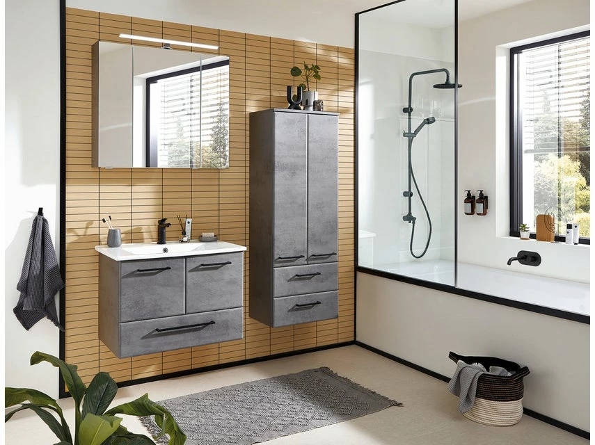 Der moderne Midischrank Filino in elegantem Oxid Dunkelgrau verleiht Ihrem Badezimmer einen einladenden Charakter. Genießen Sie herrlich viel Stauraum für Ihre Pflegeprodukte und Badetextilien.