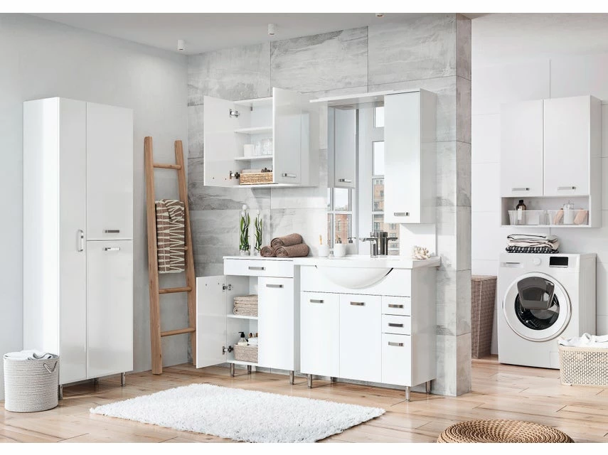 Eine optimale Lösung für zusätzlichen Stauraum im Bad oder im WC erhalten Sie mit dem Hängeschrank Amigo in Weiß Hochglanz mit Soft-Close.