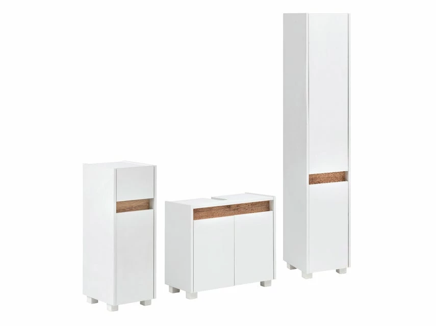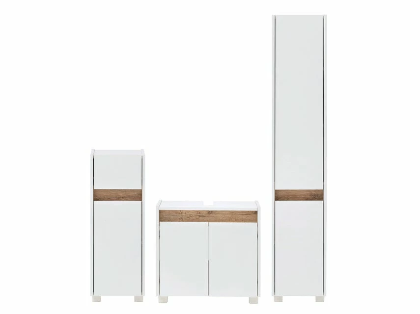 Der Hochschrank Cosmo mit seinem schlichten Design in Weiß ohne Griffe passt perfekt in Ihr modernes Badezimmer und sorgt für reichlich Stauraum.