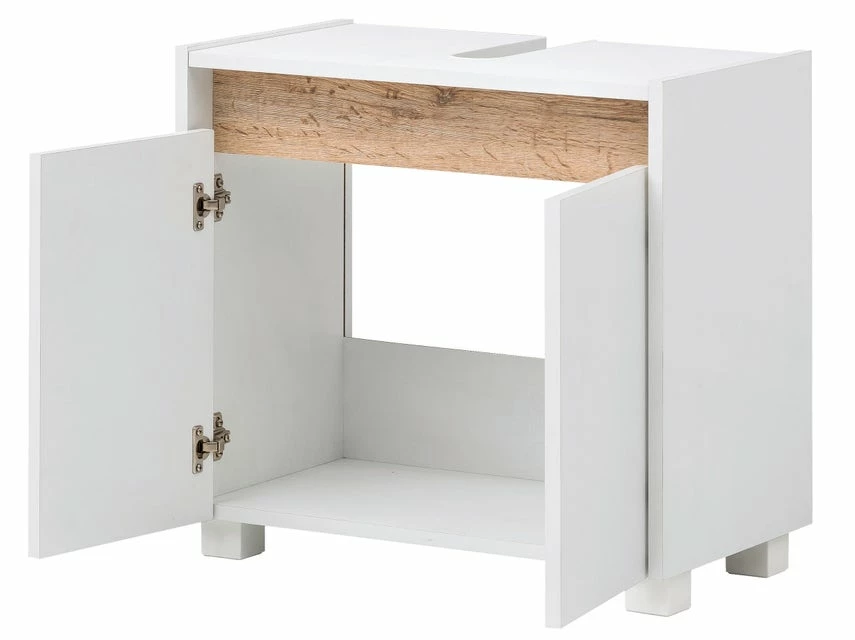 Bereichern Sie Ihr Badezimmer um wertvollen Stauraum mit diesem Waschbecken-Unterschrank Cosmo in zeitlosem Weiß. Das Badmöbel ist grifflos und ein echter Klassiker für jedes Badezimmer.