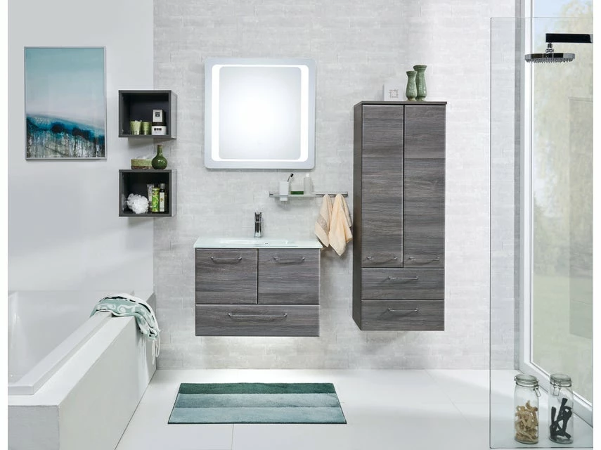 Der Waschtisch-Unterschrank Filino mit einem Korpus und Fronten in moderner Graphit Struktur Nachbildung überzeugt optisch und als Stauraumwunder in Ihrem neuen Badezimmer. Das Modell bietet Ihnen zwei Drehtüren und eine geräumige Lade für all die Dinge, die Sie täglich im Bad benötigen. Handtücher, Kosmetikprodukte und vieles mehr für die ganze Familie findet hier den perfekten Platz!
